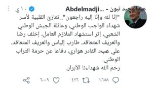 الرئيس الجزائري يعلن عن مقتل ثلاثة جنود عبر” تويتر” بعد إعلان وزارة الدفاع الجزائرية