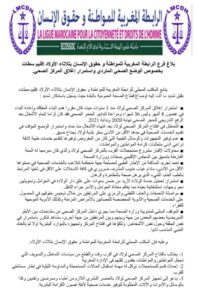 بلاغ فرع الرابطة المغربية للمواطنة و حقوق الإنسان بثلاثاء الأولاد إقليم سطات بخصوص الوضع الصحي المتردي واستمرار إغلاق المركز الصحي