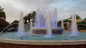 مضيفا أن النافورة تعتمد على عملية تدوير، وتصفية الماء المستعمل في النافورة، وكذا تصفيته بشكل أوتوماتيكي، بالإضافة لجهاز قياس نسبة الكلور بالنافورة، كما تتوفر النافورة على “مريَاحْ” جهاز قياس سرعة الرياح حيث عندما تفوق سرعة الرياح السرعة المحددة للنافورة ينخفض علو المياه حتى لا يخرج عن إطار النافورة.